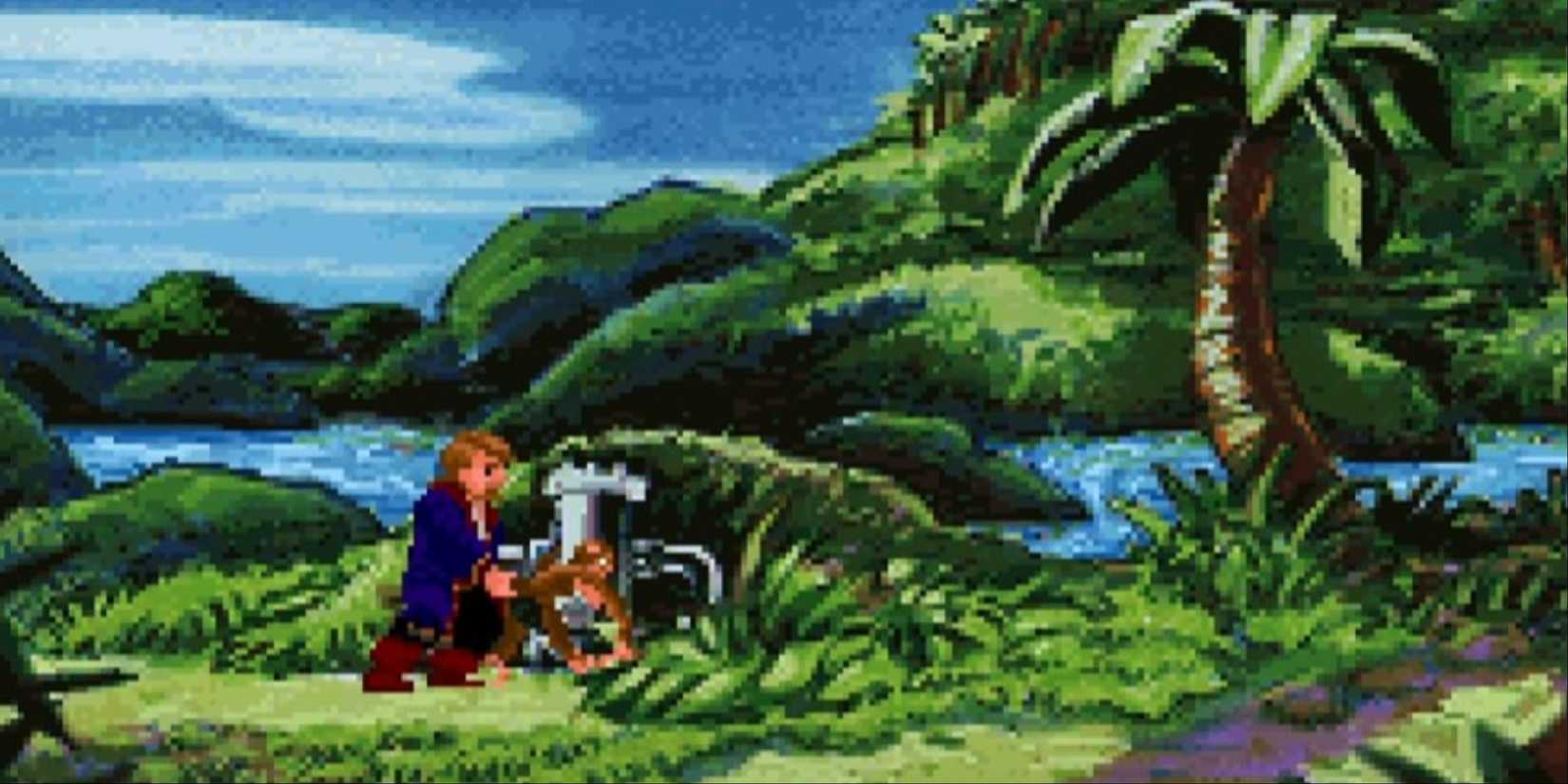 《猴岛 2:勒查克的复仇》完全是在用活动扳手来解决瀑布谜题的想法。这个想法一开始很简单。你必须进入一个被瀑布封锁的位置,并且有一种机制需要杠杆或工具与之交互并阻止水流(就好像瀑布就是这样工作的,对吧?)。但你必须采取的步骤实际上是疯狂的。