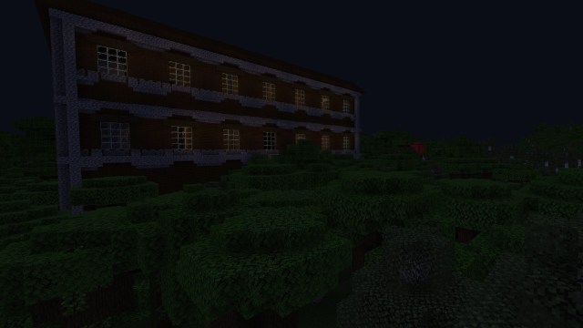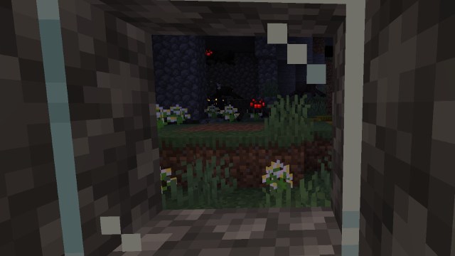 在一个小房子后面的空洞里有一个暴露的蜘蛛刷怪笼,不断地产生蜘蛛,在夜深人静的时候爬遍整个城镇和山丘。任何向窗外望去的村民都一定会看到红红的眼睛在回望。