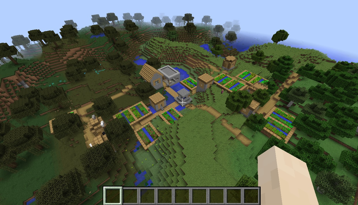 你将在茂密的森林生物群系中生成。从那里你可以向北走,在坐标-456 120处找到一个村庄,在坐标-500 -770处找到一座林地宅邸。