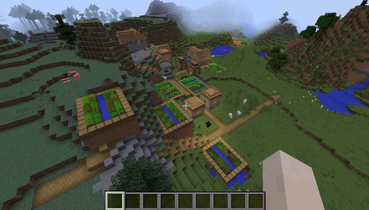 出生在一个小村庄,靠近梦幻般的极端山景。在北边的坐标 -136 -312 和 -136 -664 处,你会发现另外两个村庄。最后一个甚至有一个铁匠,他的胸口里有一颗钻石。
