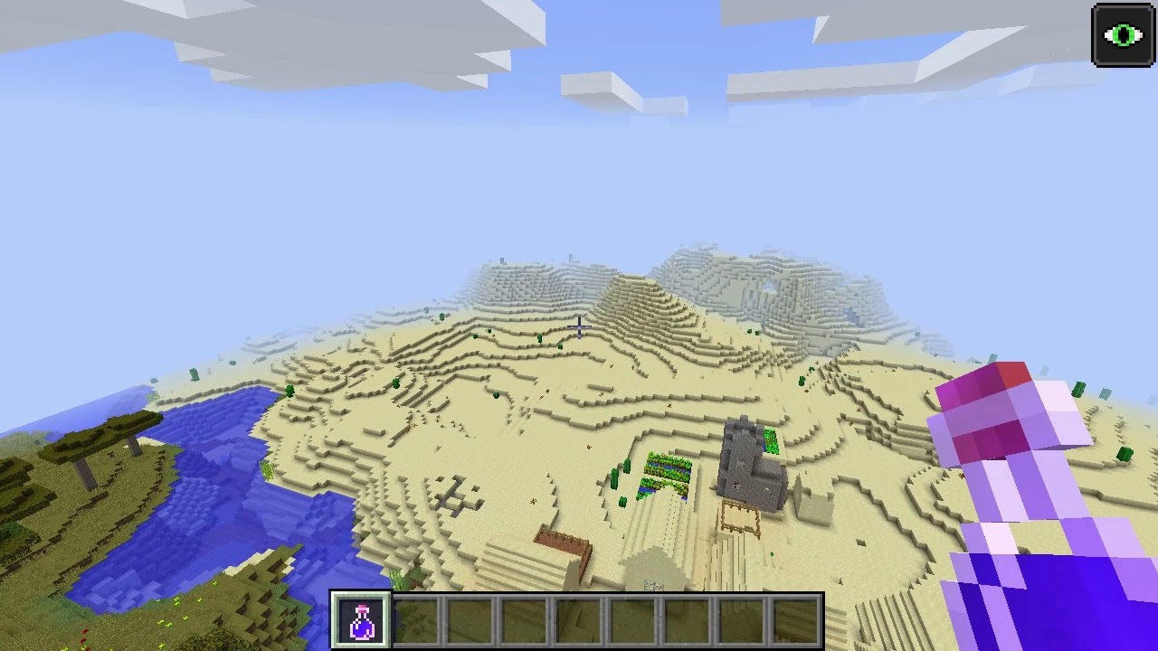 在坐标 104 232 的沙漠神庙和村庄附近生成。村庄相当小,不能提供太多东西,但神庙是事情变得真正令人兴奋的地方。