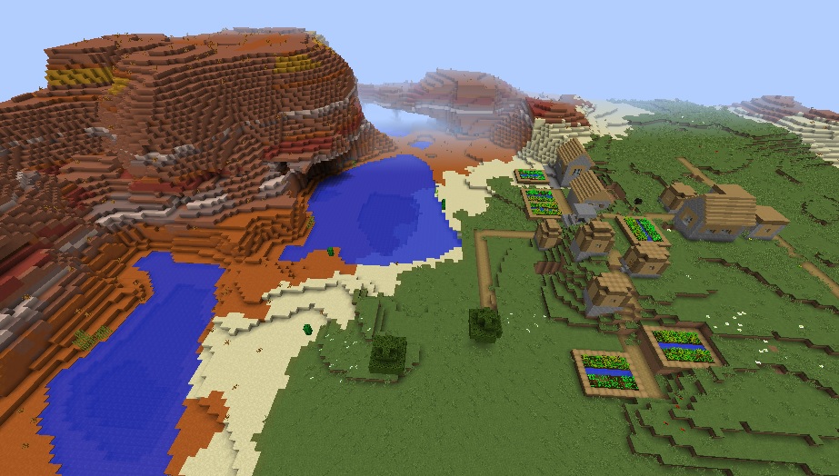 生成的区域是《我的世界》中最稀有的景点之一,该区域不是两个而是三个紧邻的村庄。