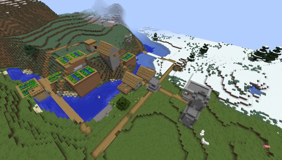 这个村庄的基地遍布三个生物群落:平原、冰原和极端丘陵。相当不错的位置!