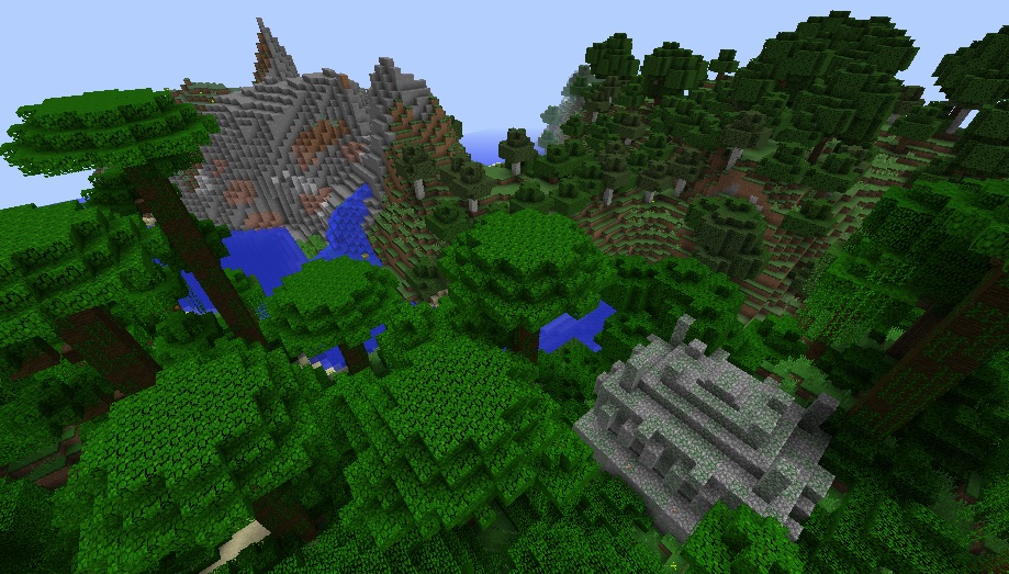 你将在与巨大丛林生物群系接壤的森林地区生成。第一座神庙出现于 869 79 -303。完全值得一试: