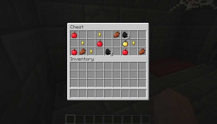 生成于平原生物群落,不远处有一座宅邸,地址:382 64 -735。豪宅的底层保留了一些有趣的箱子。第一个位于 374 65 -674 的内容包含:
