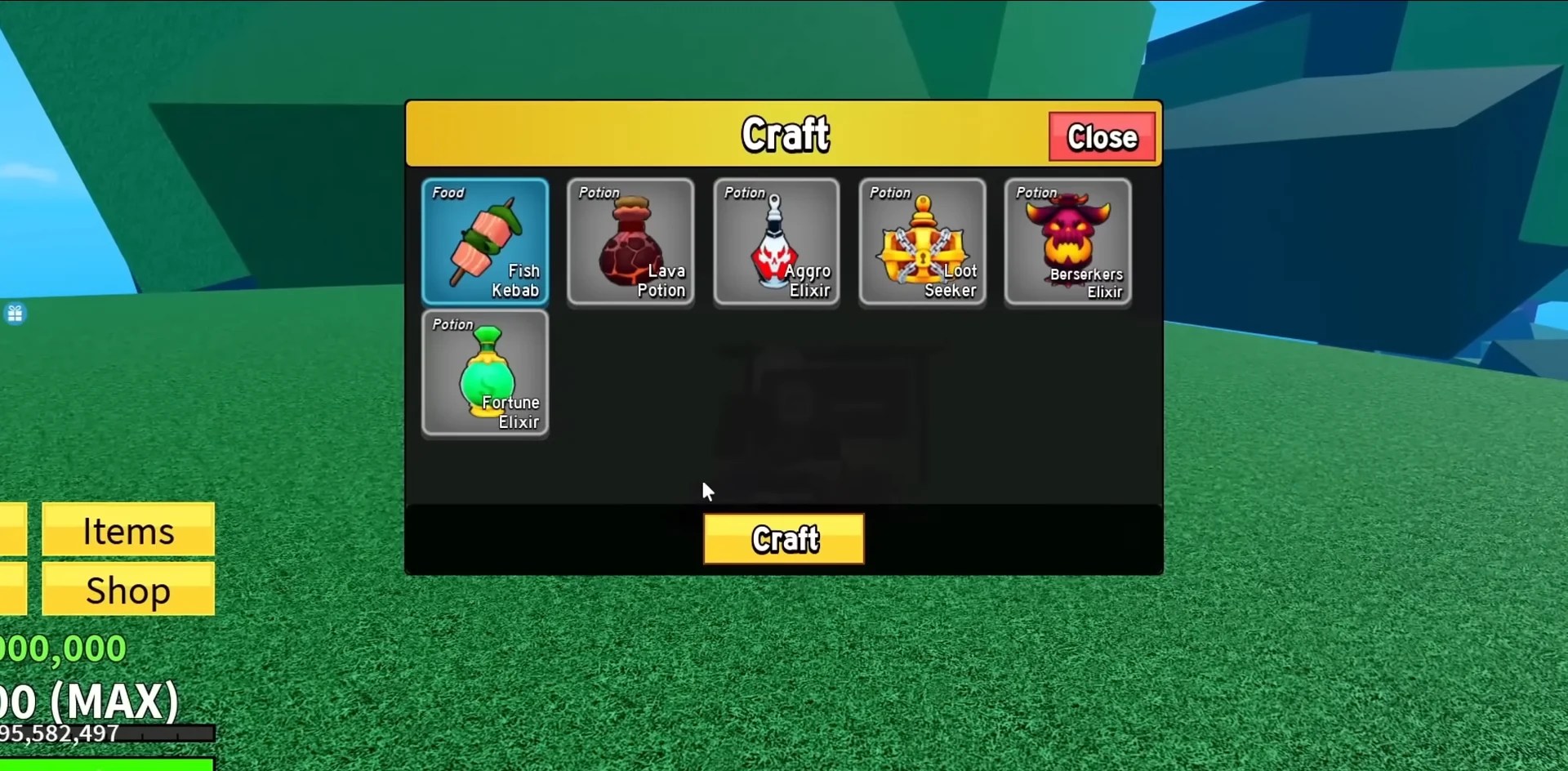 | 狂战士药剂 | • 50,000 金钱 •稀有鱼x3 • 碎片x10 • 罕见鱼x2 • 木板x1 | • 提高你对敌人和首领的伤害。 |