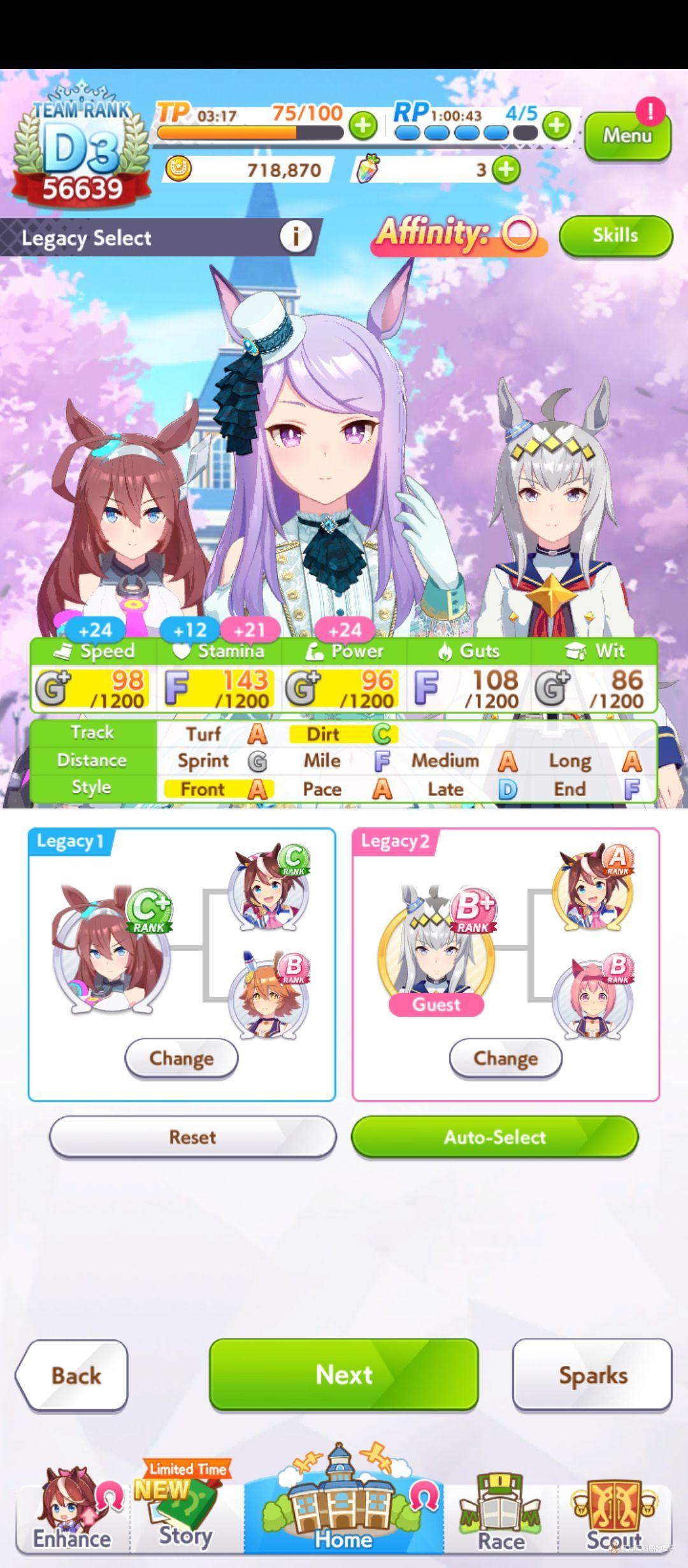 你可能会在你的追赶者、领跑者和后浪者中寻找这些火花。我们推荐的遗产小栗帽、金船和特别周。他们独特的技能可以显着提高 Mejiro 的速度,她可以在接近尾声时利用这一点来脱颖而出。