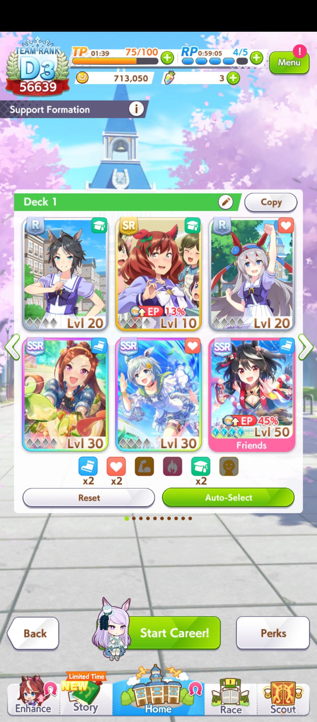 对于她的支持卡,请继续统计数据平衡, 你呢需要耐力、速度、智慧和力量卡帮助她达到最佳数量。既然你需要速度技能,重点关注这些卡牌。