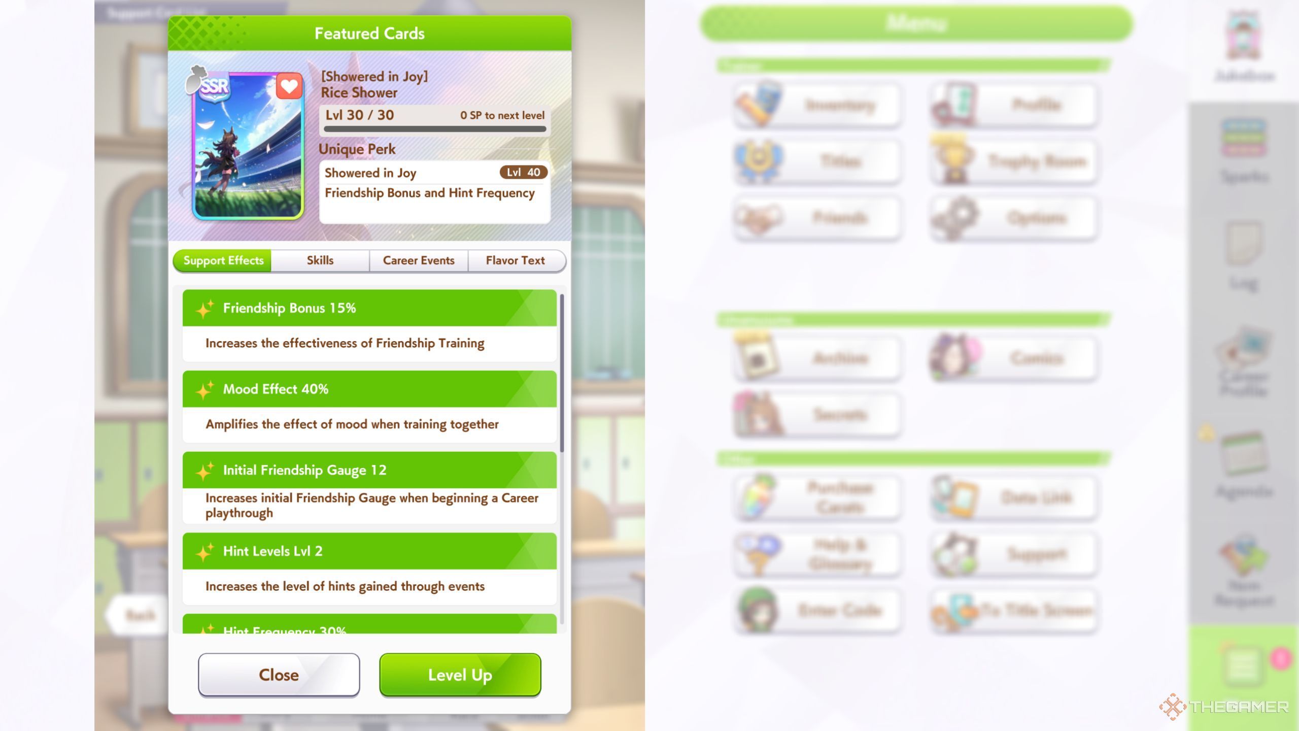 在开始与 Mejiro McQueen 合作之前,要考虑的主要事情之一就是她的遗产。在决定这些的时候,你首先要看看她与不同的角色有亲和力,并努力实现一个整体的循环。一旦你实现了这一点,下一步就是寻找尽可能多的速度和耐力。