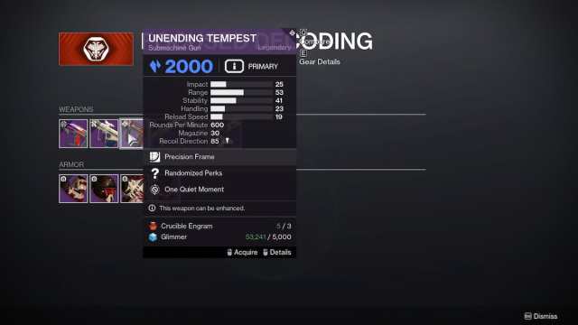 无尽的暴风雨是一种熔炉武器,你可以专注于Shaxx现在使用三个坩埚印迹和五千个微光。唯一需要注意的是,您必须玩一些 PvP 才能获得坩埚印迹。