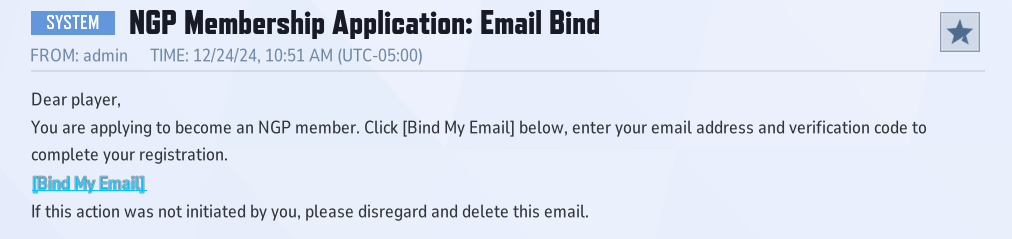 Marvel Rivals 玩家于 12 月 24 日收到此收件箱消息单击“立即加入”按钮即可进入 NGP 网站。在这里,您必须输入您的玩家 ID。这是在游戏中您的个人资料页面上找到的 UID 号,可以通过单击游戏菜单右上角的玩家图标来访问。