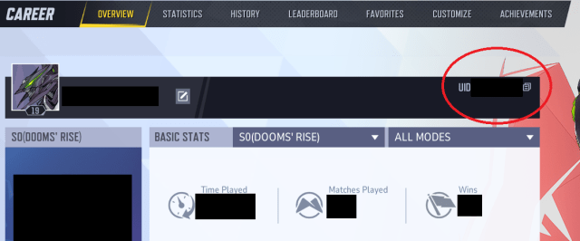 您的 UID 可以在“职业”页面的“概述”选项卡中找到,如下图所示: