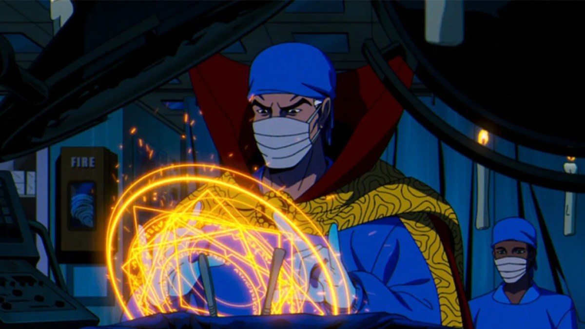 “宽容就是灭绝——第 3 部分”主要关注万磁王电磁脉冲对街道的影响——包括医院。其中一个场景发生在手术室中,奇异博士在黑暗中使用魔法进行手术。至尊魔法师之前曾在《X战警:动画系列》中客串过。他还在《蜘蛛侠》和《无敌浩克》中客串过。