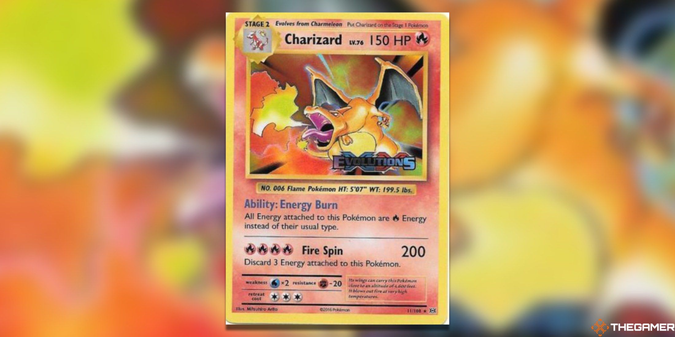 就像超梦一样,喷火龙欣赏它的过去,但又不被困在其中,因为这张卡在视觉上与其基础套装版本相似,除了 XY Evolutions 预发行印章,该印章将该版本区分为用于推广该套装的促销卡。除了该邮票之外,这张卡片与标志性的原始设计具有相同的视觉效果。