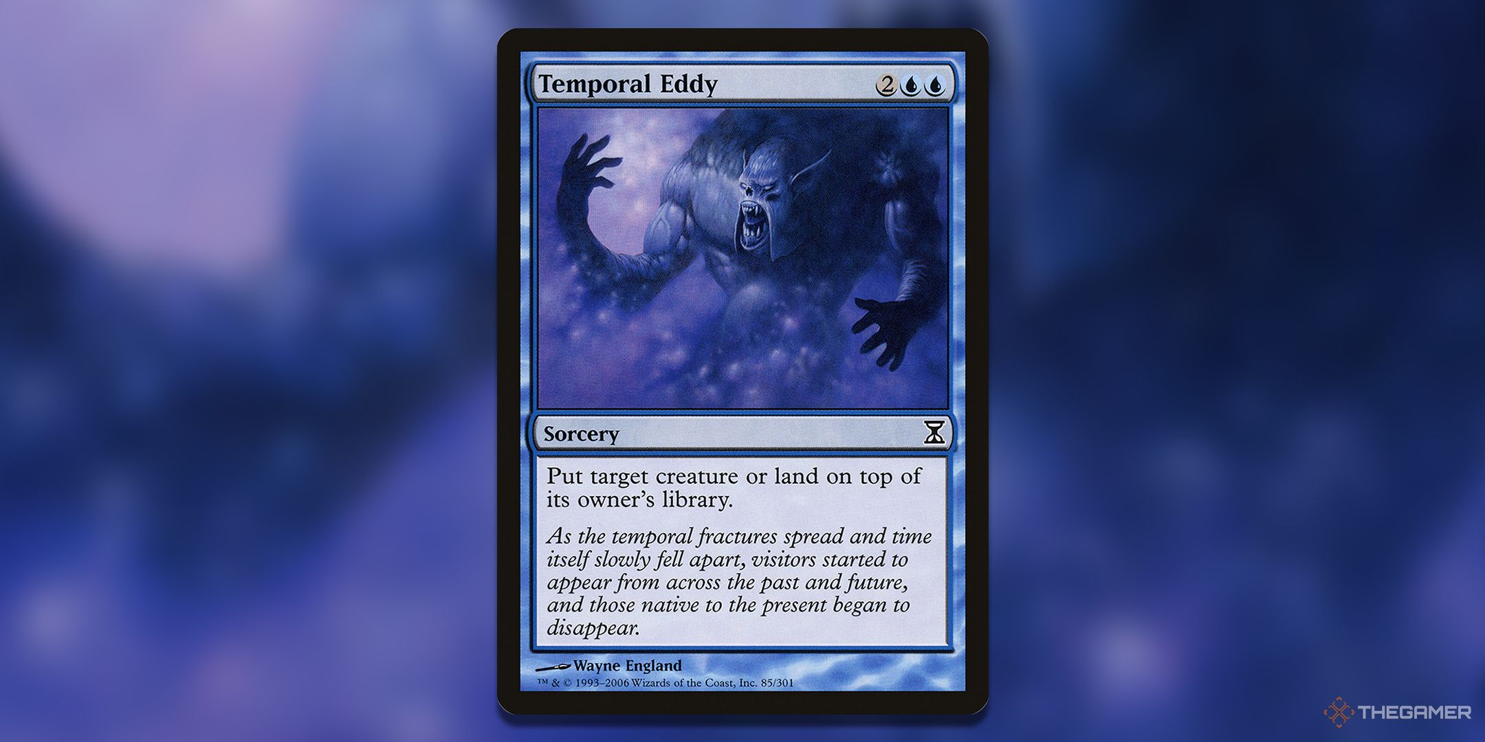 时空涡流可能只是一种魔法,但事实上你可以用它来瞄准地,这使得高昂的四点法力成本是值得的。将生物扔回给某人是不好的,如果时机正确,将其土地扔回可能会使他们陷入多个回合。