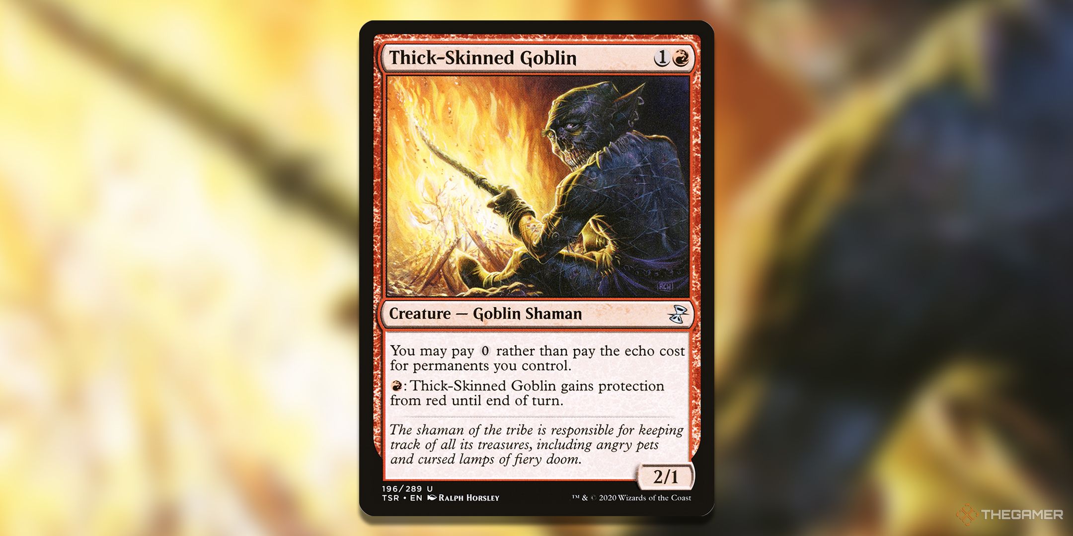 万智牌中的许多机制都是彻头彻尾的缺点,其中之一就是回声。带有回声的永久物需要你支付两项费用:一项是施放,然后是在下一次维护时支付一次,以保留你已经支付的东西,否则它会牺牲自己。时间螺旋的厚脸皮哥布林让你对此说“不”,并免费保留这些回声永久物。
