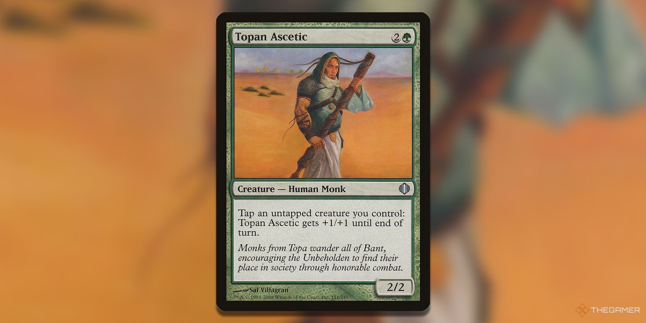 如果你有办法重置生物,效果会更好。有了几个法力增强器,你就可以无限地横置和重置 Pili-Pala,使 Topan Ascetic 变得任意大,将这种沉睡的罕见物品变成棋盘上最大的威胁之一。