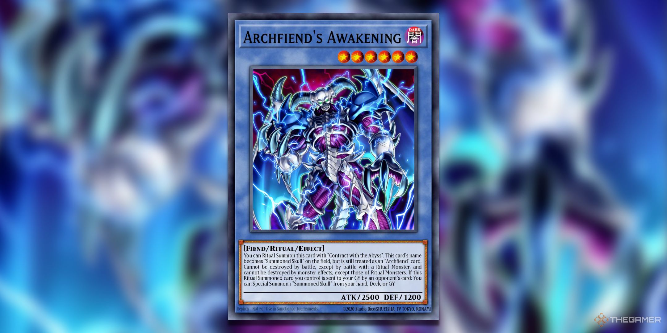大恶魔的觉醒是一种更传统的召唤骷髅重制,因为它在场上仍然被视为经典怪物。这是其中怪物的蓝色闪电与仪式卡的标准蓝色设计完美搭配的卡牌之一。