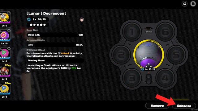 你需要成分匹配角色的W-Engine效果进行修改,这是通过战斗模拟获得的。要获取一些组件,请选择概要, 然后训练, 和W-发动机改装。