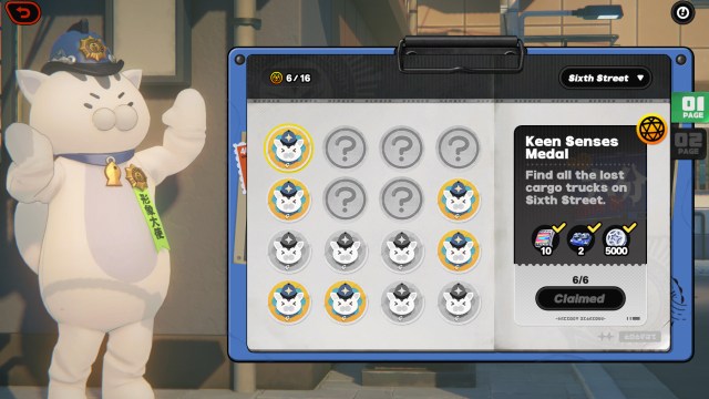 | 在第六街警官喵喵的首页收集 3 枚奖牌 | 100x 结间信用 2x 高级调查员日志 |