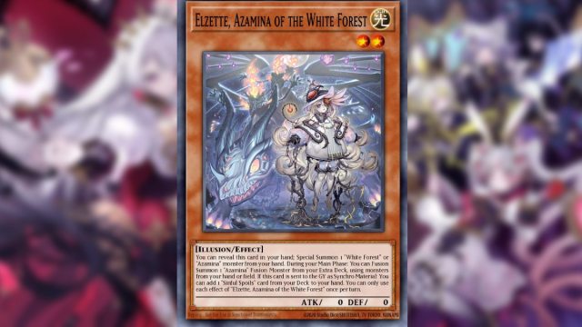 | 影響 | 你可以展示你手上的這張卡;從手牌特殊召喚1只「白森林」或「阿扎米娜」怪獸。自己的主要階段時:可以使用自己的手卡·場上的怪獸,從額外卡組融合召喚1只「阿扎米娜」融合怪獸。這張卡作為同調素材送入墓地的場合,可以從卡組將1張“罪孽戰利品”卡加入手卡。 「白森林的艾爾澤特·阿扎米娜」的每個效果1回合各能使用1次。 |