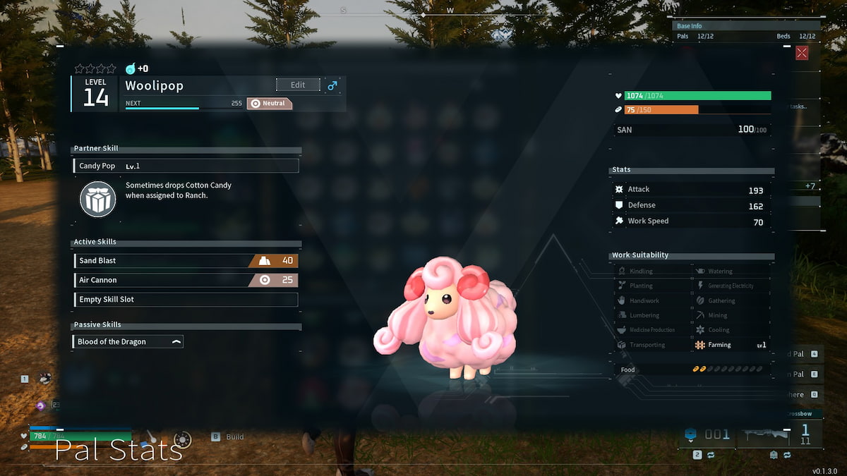 雖然 Vixy 沒有出色的戰斗數據,但它在早期關卡中很有用。它非常適合在你的牧場上尋找箭、夥伴球和黃金。一旦你開始捕獲更多夥伴並解鎖更好的技術來替換基本的伙伴球體或切換到弓槍,Vixy 就會成為 Palworld 中第一個無用的伙伴。我喜歡讓一隻在基地活躍,只是因為它很可愛。但1級採集和耕作數據以及糟糕的戰鬥技能使其很難下降。