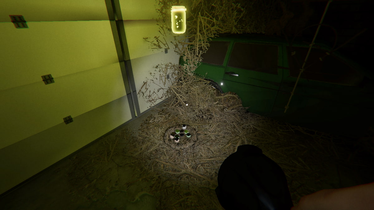 另一個巢穴正在等待被發現車庫在一樓。前往餐廳的右角找到通往車庫的門。走到車庫門附近綠色汽車的後輪胎處找到它。