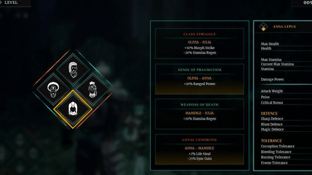 - 階級鬥爭(奧爾維亞-朱莉婭):+30% 變形打擊,-20% 耐力回复