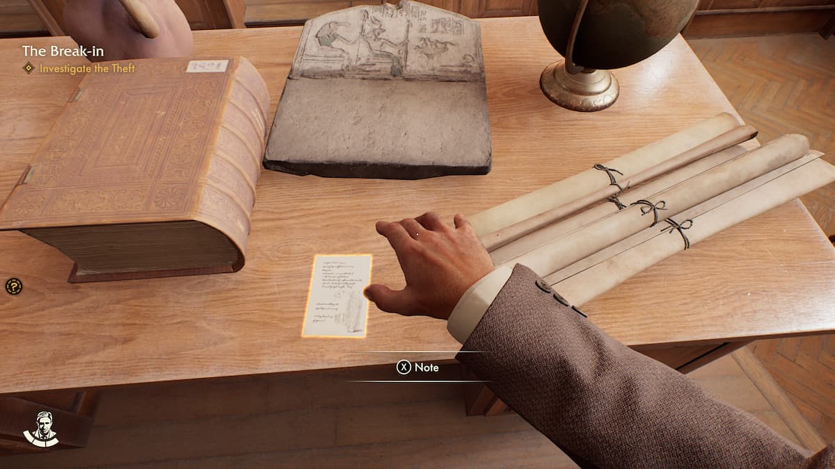 印第安納州教室裡收到的第一張紙條是關於被巨型入侵者偷走的貓木乃伊的。從班級前面印地的桌子上拿起它,並了解為什麼這座雕像如此重要。