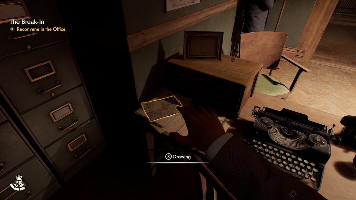 在進入辦公室繼續主線任務之前,從外面的桌子上拿起圖紙。這是在主要大學區域找到的最後一張紙條。