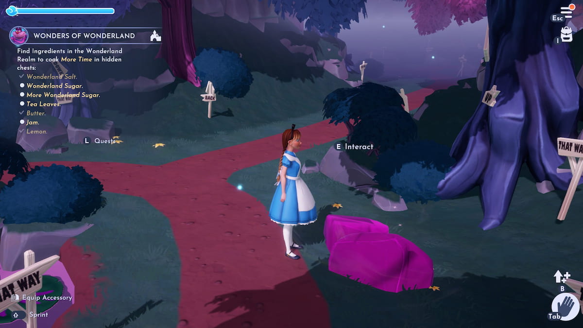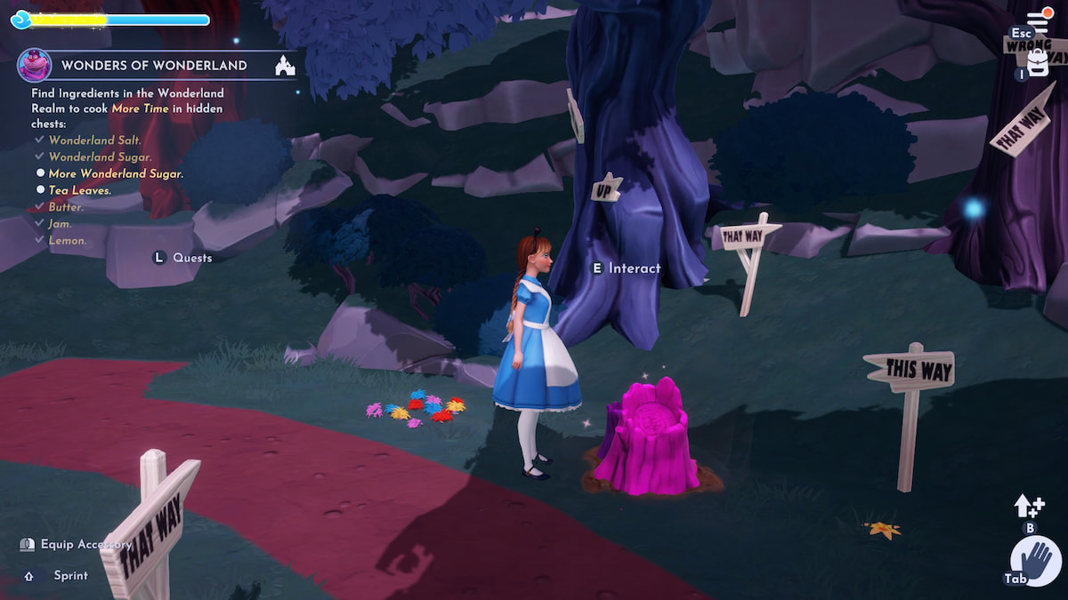 有七種成分需要在仙境奇觀任務中騰出更多時間,所有這些都可以在愛麗絲夢遊仙境王國中找到。由於仙境中的一切都不像看上去的那樣,它們都偽裝成其他物體,這使得找到它們變得很棘手。