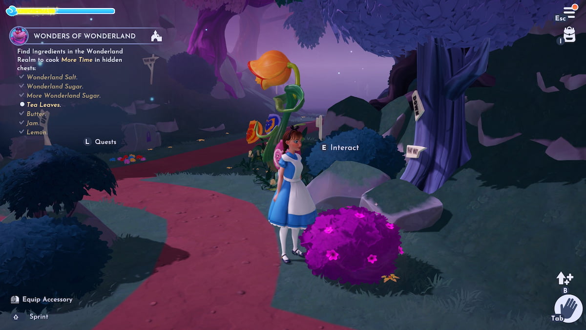 收集完所有原料後,您就可以花更多時間開始烹飪了。與柴郡貓交談,然後前往王國入口處的烹飪站開始製作這個食譜。