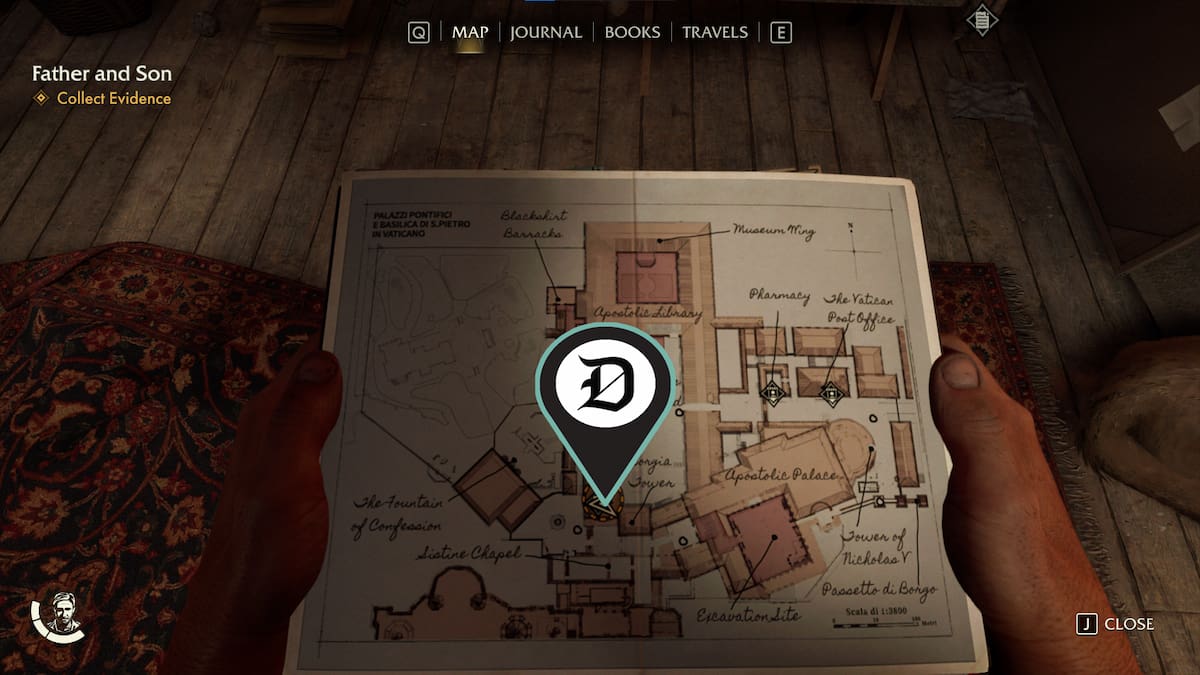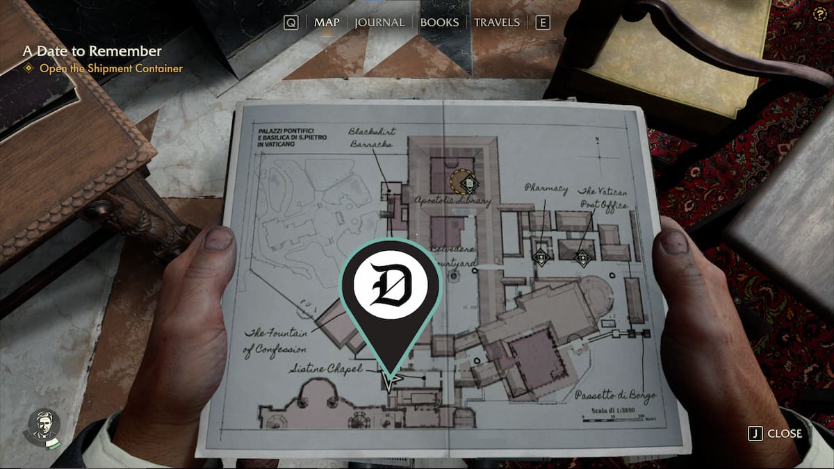 秘密之謎位於梵蒂岡西南側的西斯廷教堂內。您可以穿過博吉亞庭院到達該區域。當你到達里面時,在入口的左邊尋找一個有樓梯和一張桌子的房間。桌子旁邊的角落裡應該有一個保險箱。桌子上有尼科萊蒂的信,其中詳細介紹瞭如何打開保險箱。您需要閱讀聖彼得雕像底部的代碼,然後閱讀聖保羅雕像下方的代碼。該代碼以符號形式詳細說明,並且有一個行星圖詳細說明了這些符號的數字。