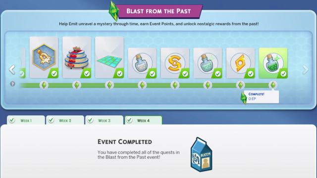 《模擬人生 4 過去的爆炸》活動的最後一周即將到來,它可能是整個活動中最酷的獎品。如果您想解鎖此獎勵和其他獎勵,您需要完成第四周的所有任務。