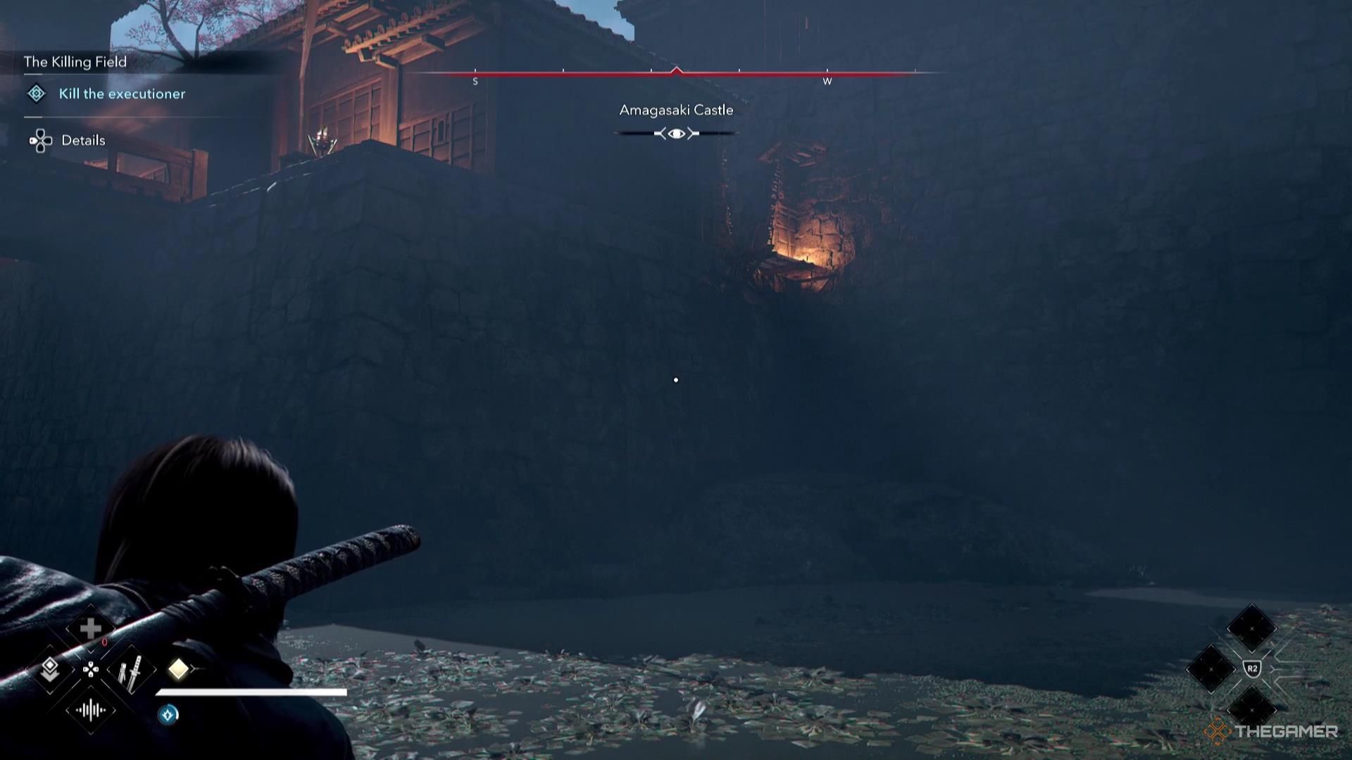 - 城堡的西北側還建有一座岩石部分與護城河中的水齊平。您可以從水中爬到這些岩石上,然後使用抓鉤將自己拉到牆上。