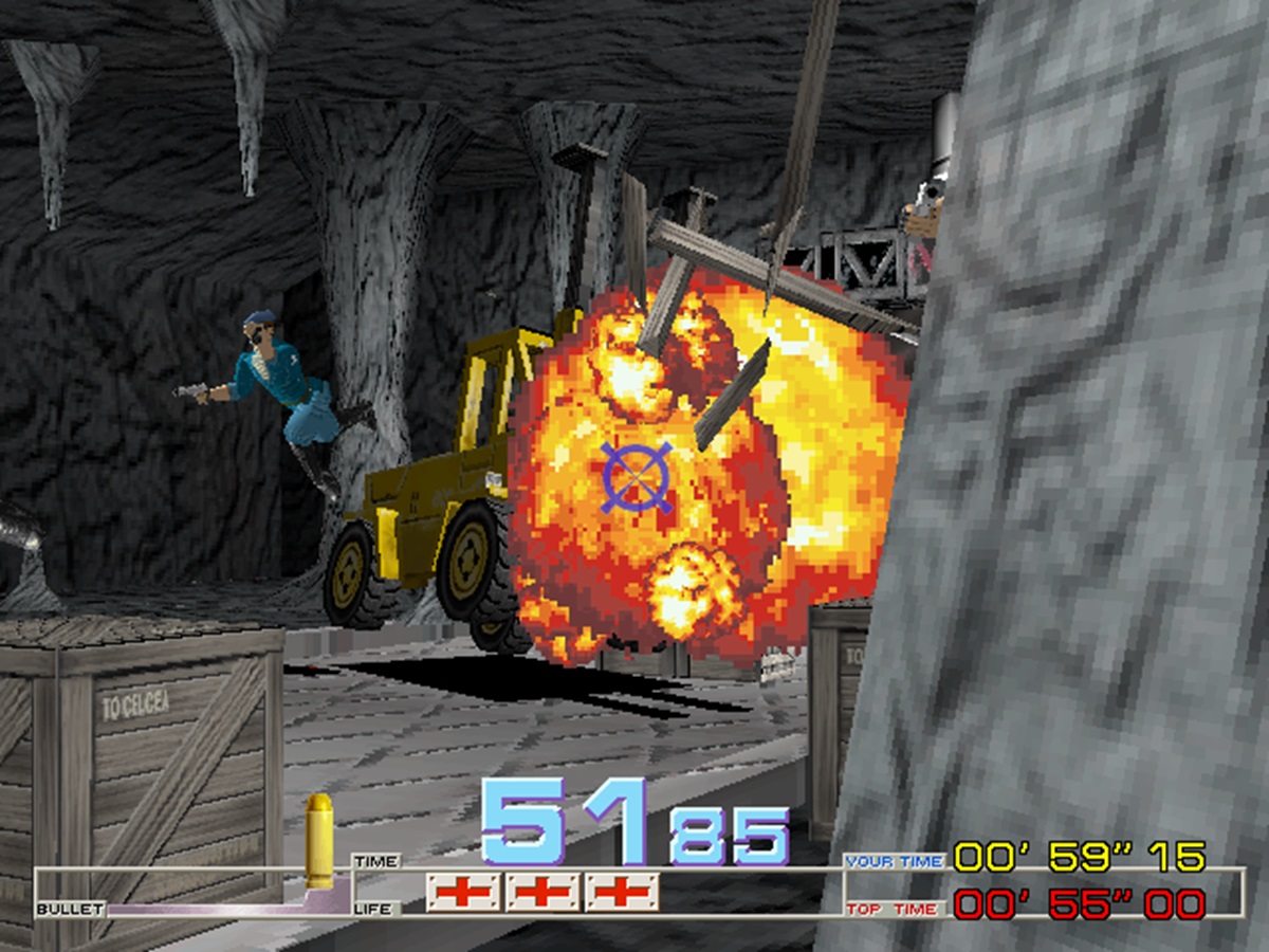在這種情況下,我們可以有把握地說,該系列中的第一部原創作品可能並不是最好的。但這並不意味著它應該在時間的沙子下腐爛。也許今天可能不太明顯,但 Namco 1995 年的遊戲首次推出了該類型的獨特遊戲功能,例如躲避機制、武器重裝和完成限時任務。事實上,在 1995 年之前,在軌道射擊遊戲中給武器重新裝彈根本不是一件事情。我們已經走了多遠!