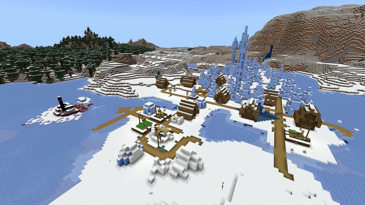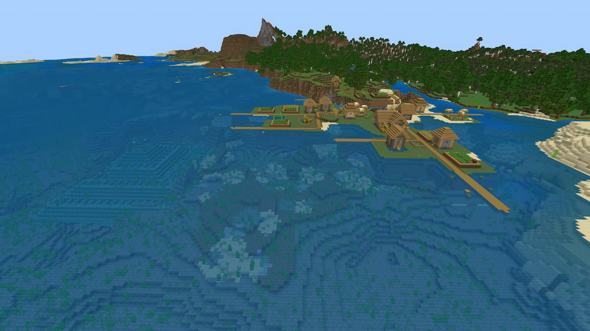 這個海濱平原上的村民站在海洋紀念碑上。在探索紀念碑周圍的海洋時,您將有機會挖掘一群冷海廢墟並穿越沉船。喜歡留在陸地上的玩家可以輕鬆進入埋藏的寶藏。為了使這種種子變得更甜,該村的海灘是一群海龜的家,而附近的稀樹草原生物群落有一堆屁股。
