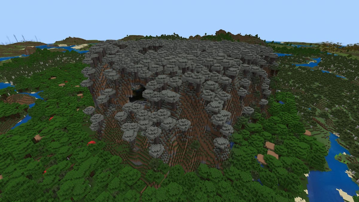 從表面可以看到這個鬱鬱蔥蔥的洞穴,使其易於偵察和探索。旁邊是一個小村莊。儘管他們沒有鐵匠,但它們是一個非常方便的地方,可以交易您在洞穴中發現的任何祖母綠。洞穴內的許多游泳池和瀑布將幫助您輕鬆前進。除了鬱鬱蔥蔥的洞穴之外,您會在洞穴的隱藏凹處中發現一個深色的生物群落。