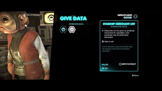 最後但並非最不重要的一點是,您可以出售數據聯合商人以獲得聲譽。當您出售數據時,您將準確地看到您獲得了多少聲譽,這使其成為良好聲譽的重要來源。此外,幾乎不可能因為提供數據而導致不良聲譽。