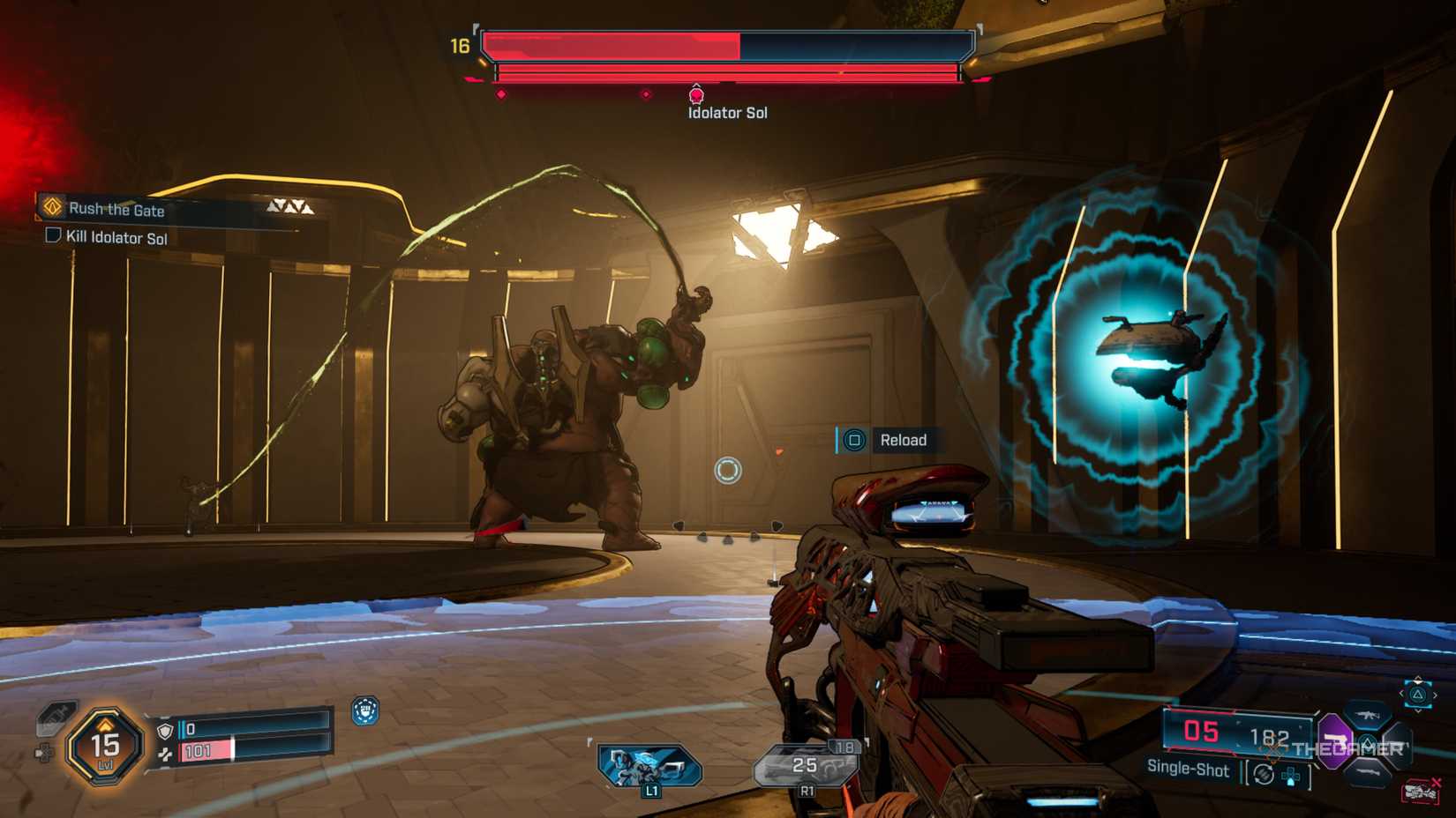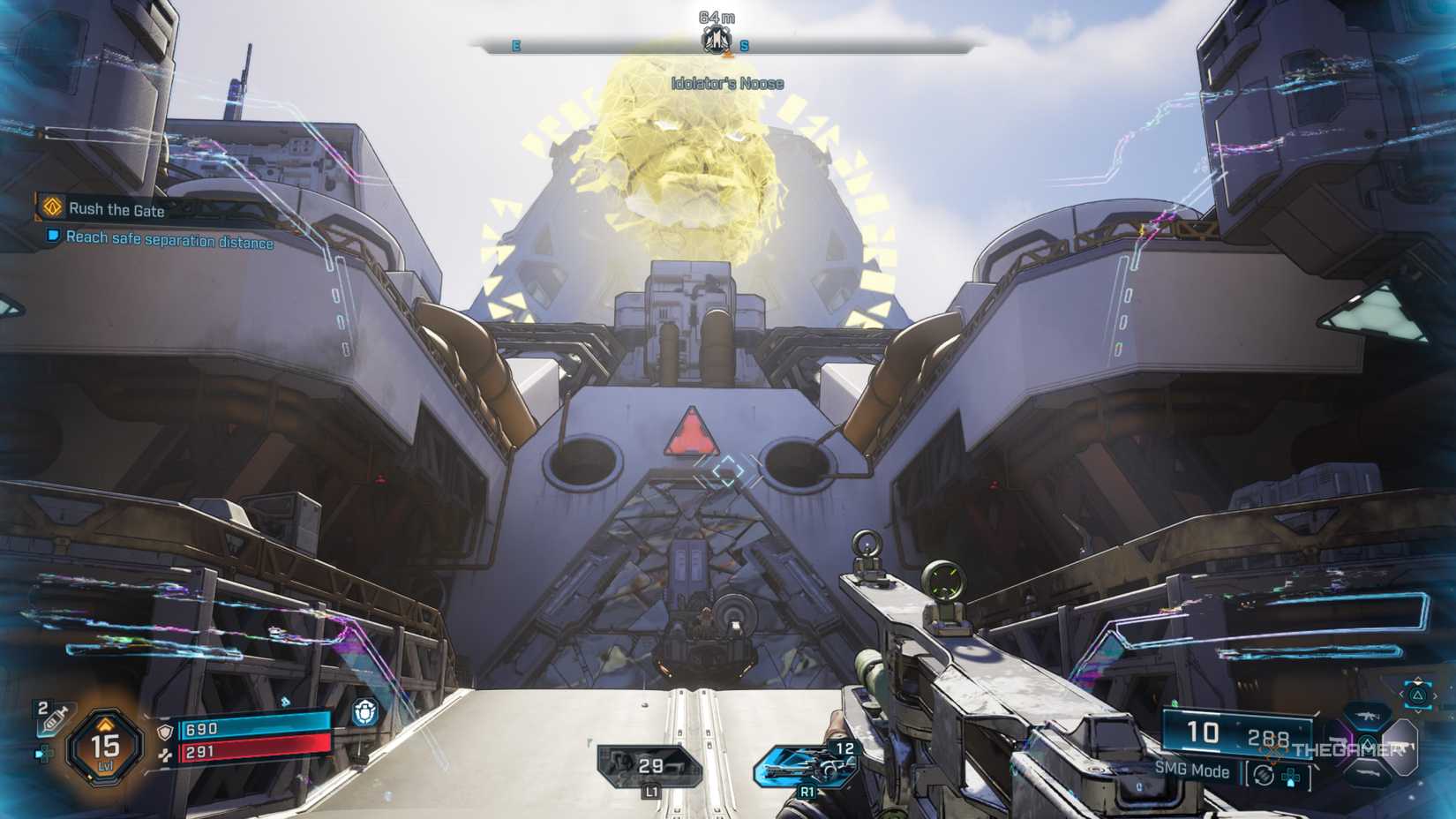 一旦你把他打倒了收集他的螺栓和任何好的戰利品。從那裡,你就可以自由出發了。快速返回發射台並與拉什交談以完成任務。