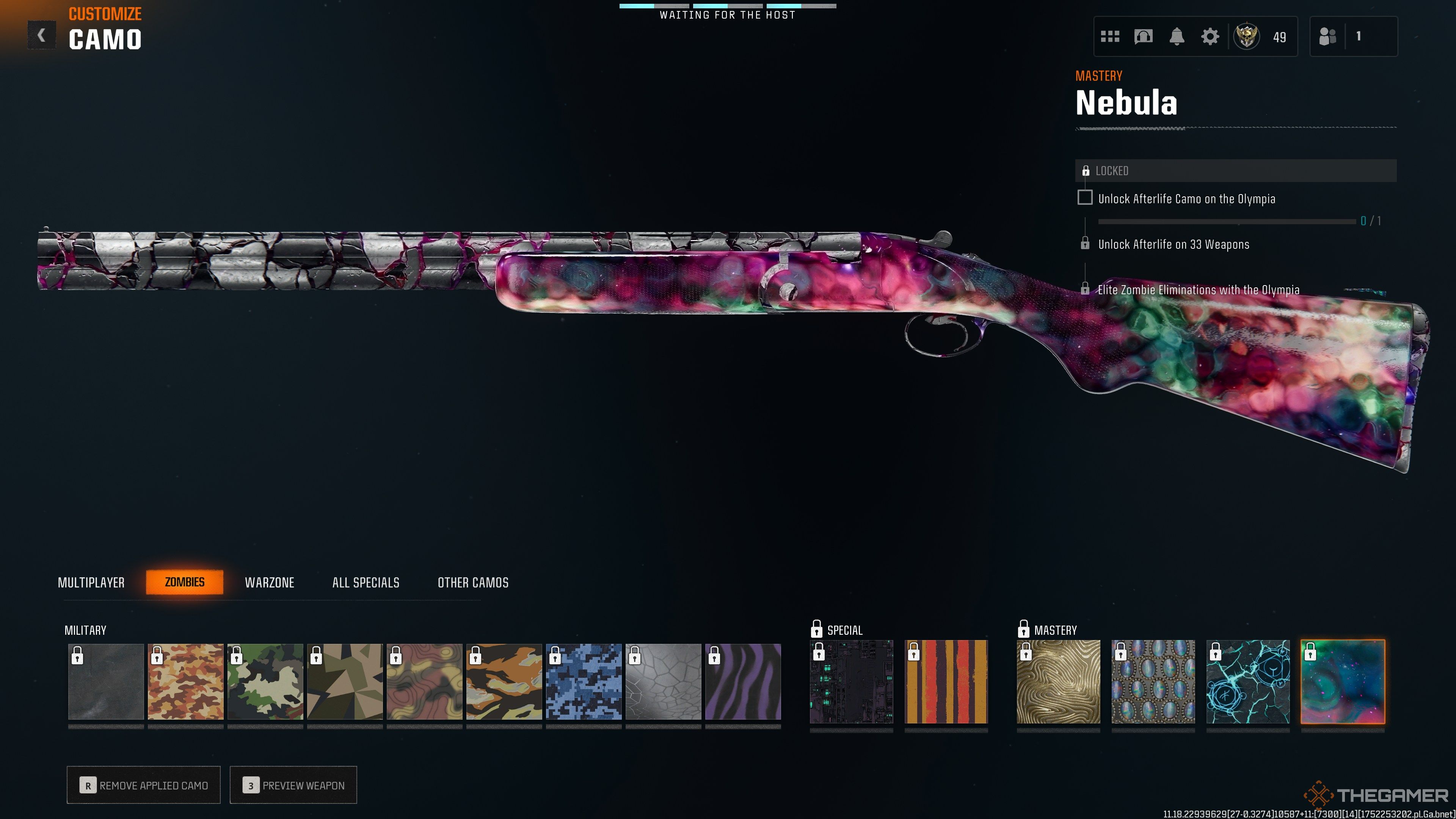 奧林匹亞在遊戲的第四個賽季中回歸,這是第一支出現在次要位置的霰彈槍。與《黑色行動 6》中的大多數武器一樣,奧林匹亞擁有一系列迷彩挑戰,您可以完成一系列迷彩挑戰,為它鍍上獨特的精通迷彩。共有三套迷彩可供解鎖,每種遊戲類型各一套 - 多人遊戲、殭屍和戰區。