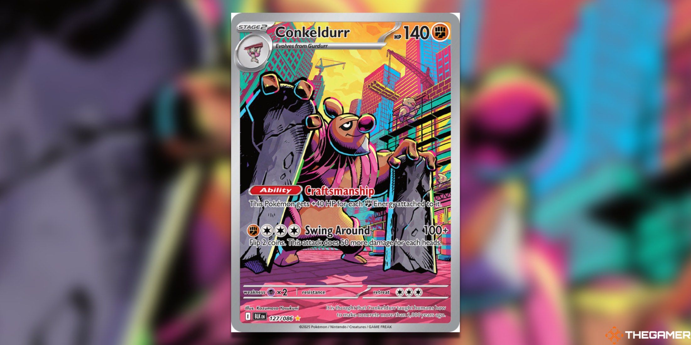 無論您是 Conkeldurr 和 Gurdurr 外觀的粉絲,還是喜歡迷失在背景城市的細節中,這張卡片都精美地反映了 Unovan 神奇寶貝和場景。