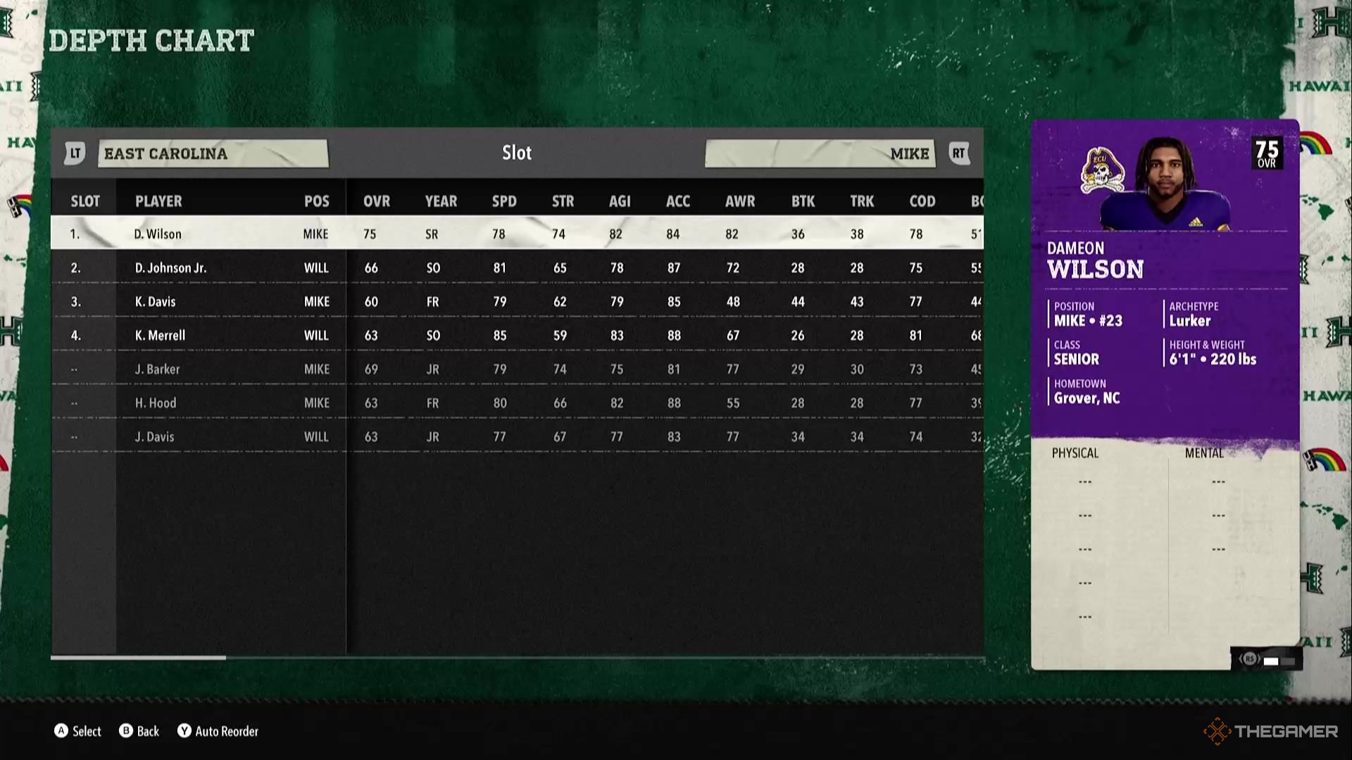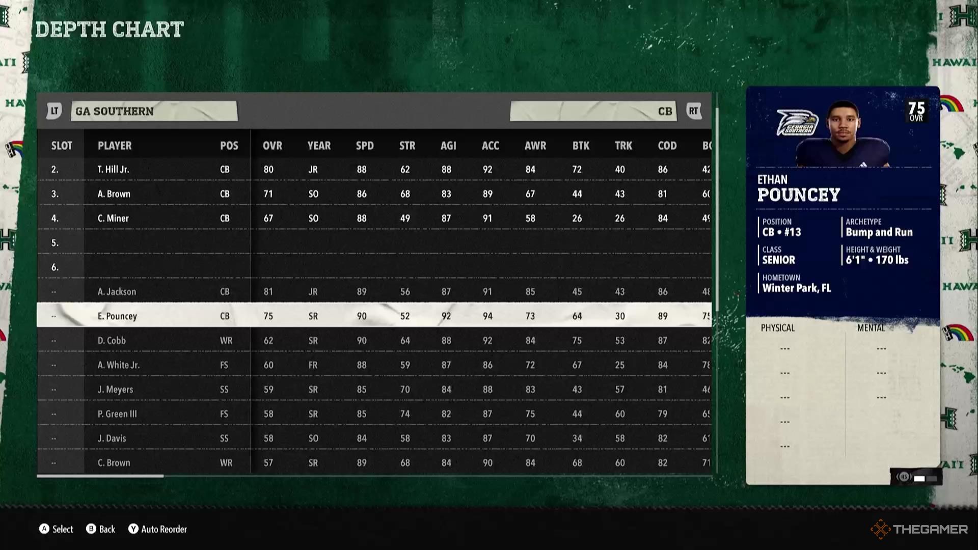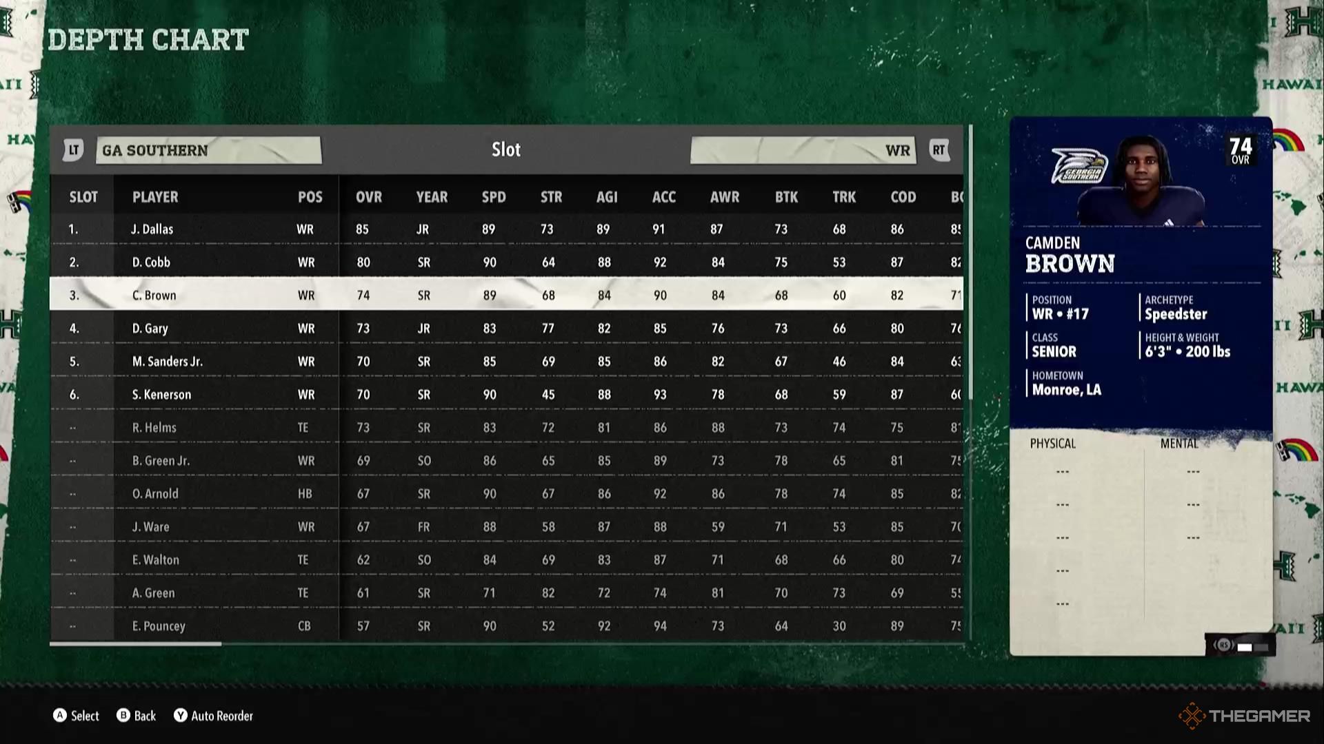 韋斯頓·布萊恩 | QB | 新生 | 韋斯頓的運動能力不是特別好,但他確實有一些投擲評分已經很不錯了。作為一名新生,您將有充足的時間進一步發展這些能力,幾年後你就可以在這裡擁有一個非常好的口袋傳球手。 |