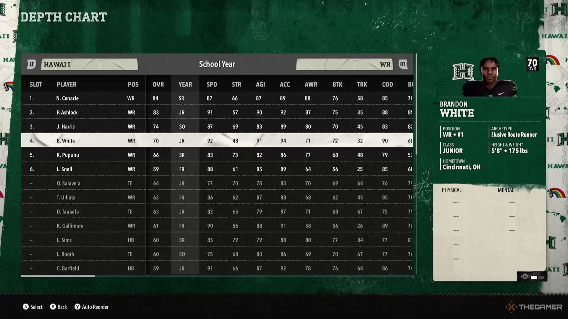 維克多·斯諾 | WR | 初級 | 維克多·斯諾雖小,但他速度很快,雙手出色,路線跑步。根據你在四分衛的選擇,你可能很難讓他接球,但如果可以的話,他會讓事情發生。 |