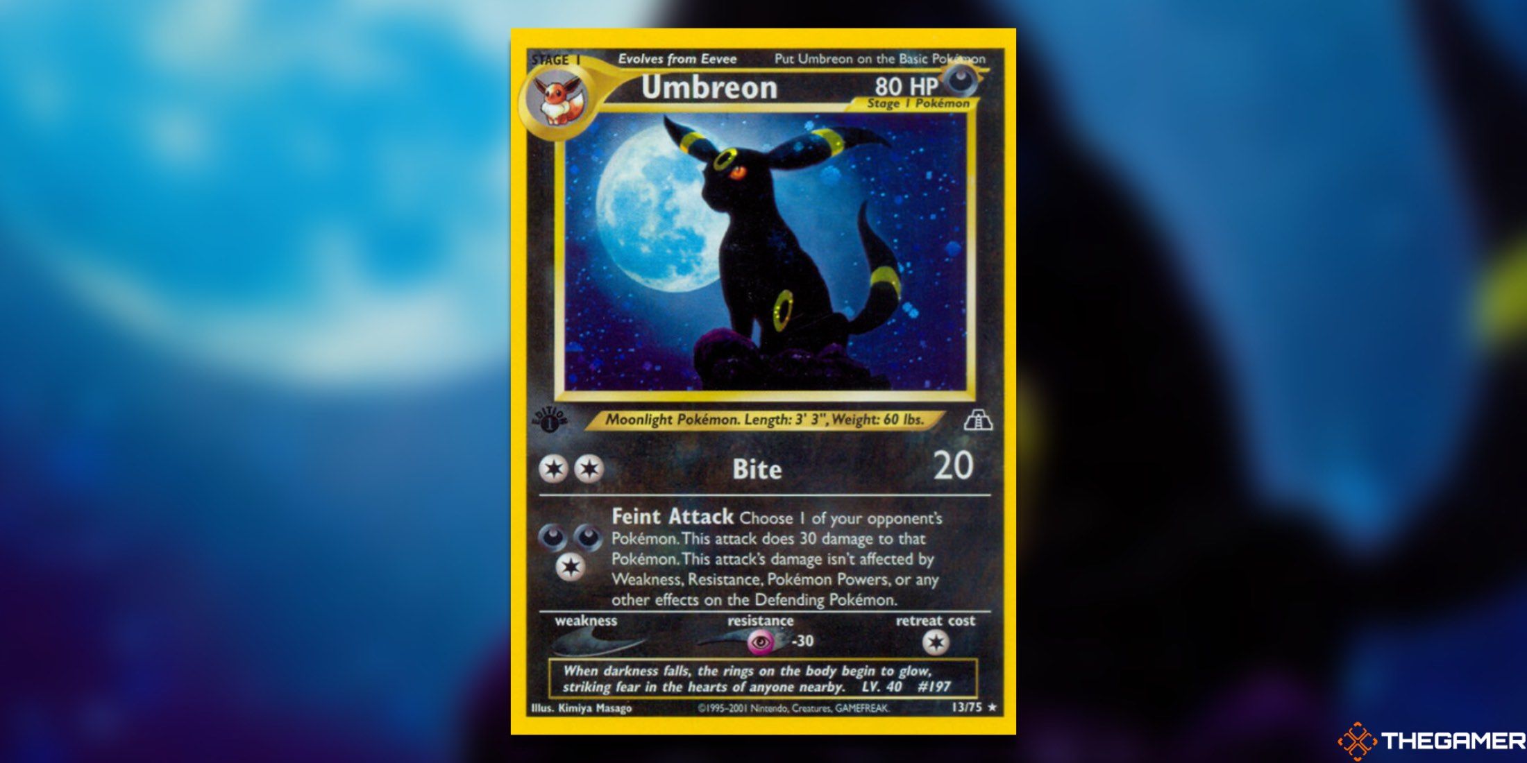 Neo Discovery Umbreon 是真正的元代,它是 Umbreon 出現在月球前的第一個標誌性例子,並且仍然是 Moonbreon 的最完美例子。雖然您的品味最終將決定您是否喜歡這個版本或 Moonbreon 的更現代的解釋之一,但很容易理解為什麼這張卡導致了“Moonbreon”一詞的創建。