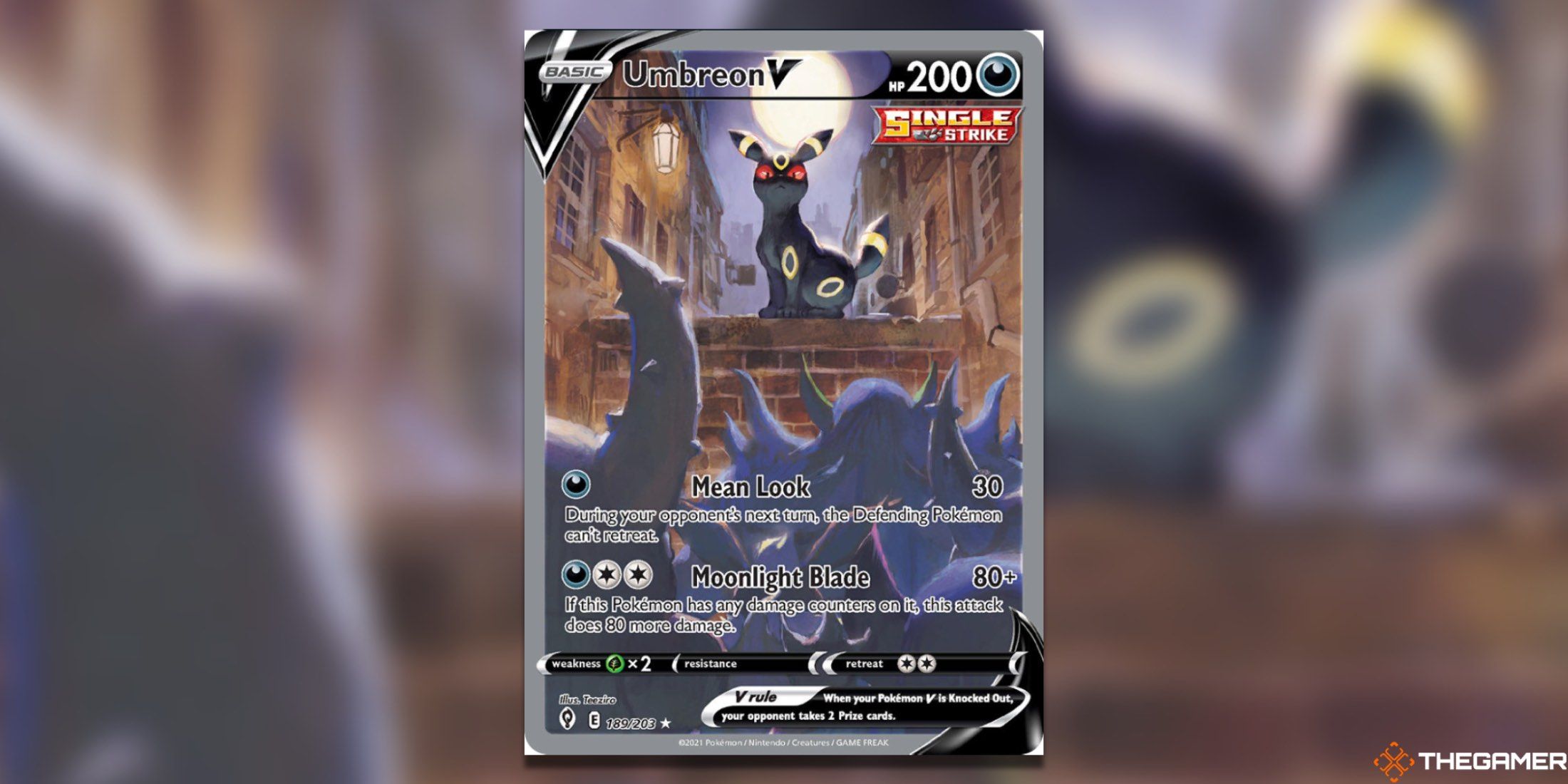 雖然它甚至不是同系列中最著名的 Moonbreon,但 Umbreon V Alt Full Art 卻脫穎而出,成為 Moonbreon 卡的最佳範例之一。 Umbreon 高高地矗立在一群神奇寶貝上方,月光下的聚光燈照在它身上。
