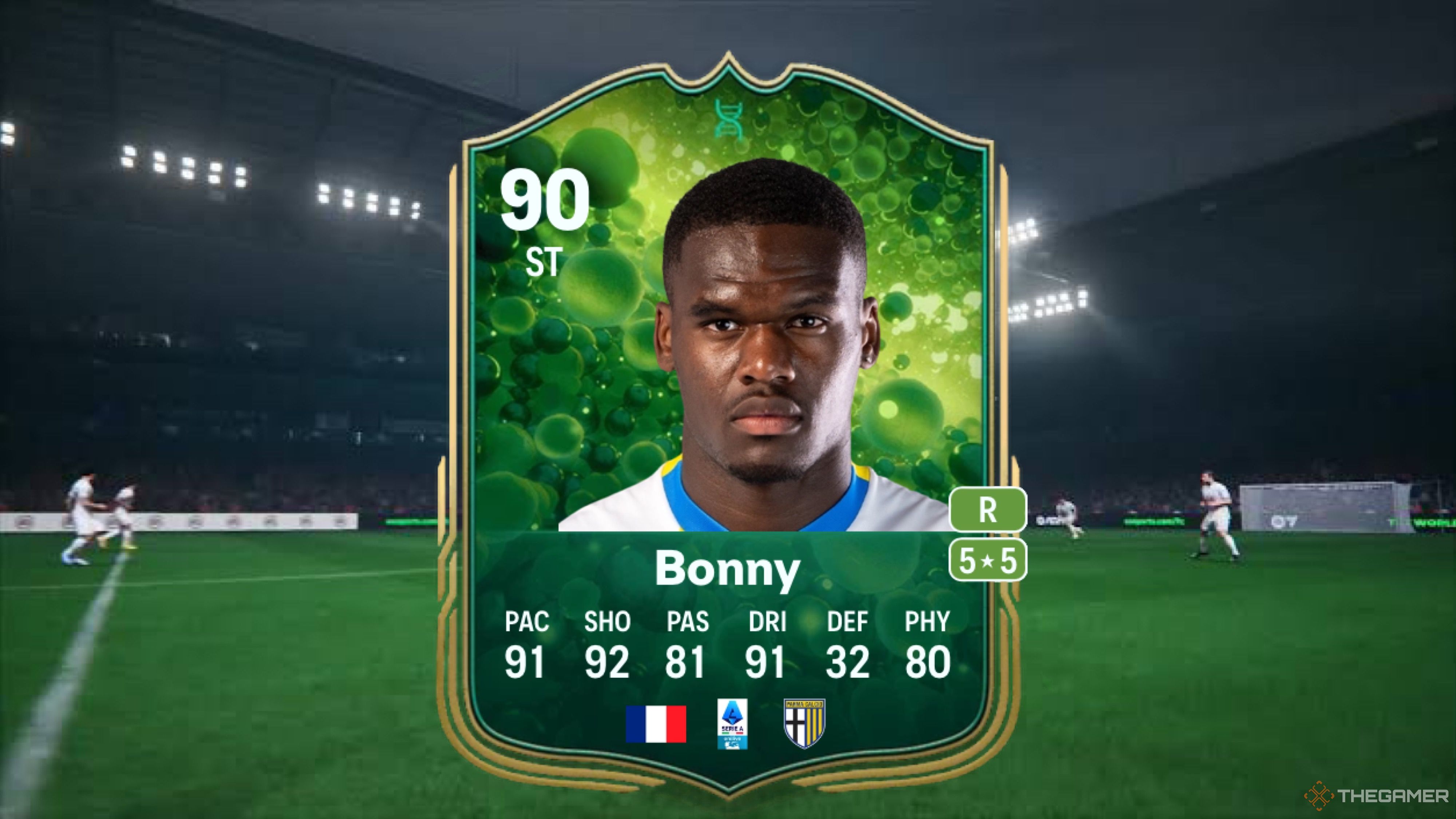 安格-尤安·邦尼(Ange-Yoan Bonny)是一名年輕球員,他仍在努力成為比賽中最好的前鋒之一,他的發光卡具有頂級前鋒的品質。進化提升了他的攻擊統計數據、耐力、技能動作、較弱的腳步準確性,並賦予他一些致命的攻擊打法。