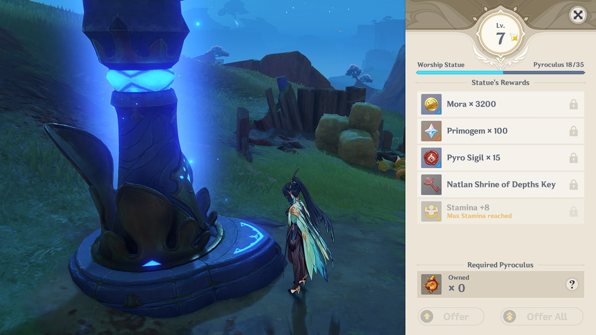 獲得納特蘭深淵神殿鑰匙的另一種方法是通過提供火神星來升級七人火神鵰像。以下級別將為您提供鑰匙: