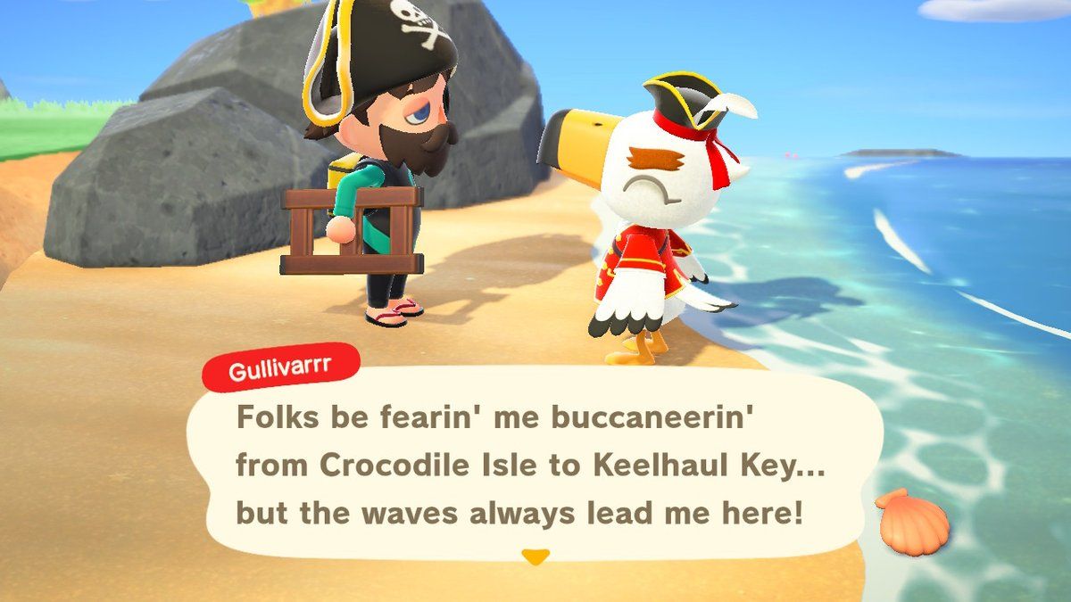 奇怪的是,《動物森友會》中的一位經常出現的冒險家去過鱷魚島:格列佛!在動物森友會:新視野,他自豪地宣稱,他的海盜方式不僅在那裡灌輸了恐懼,也給龍骨島帶來了恐懼。