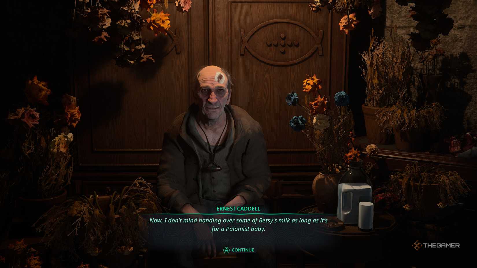 為此,您必須返回游戲的第一個區域並前往卡德爾農場,然後與歐內斯特交談。如果你還記得的話,他的農場裡有一頭活牛,旁邊的桌子上甚至還放著一大罐牛奶。把空牛奶瓶交給他,他會很樂意重新裝滿。要求你不要把它給任何薩賓嬰兒。哦,好吧,他不知道的東西不會傷害他。